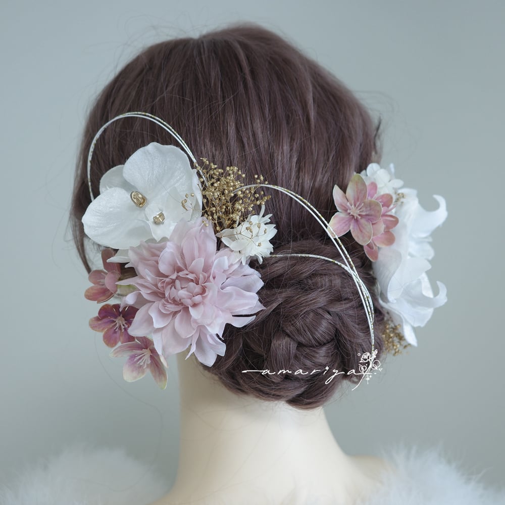 髪飾り ベルベット胡蝶蘭と桜とダリア