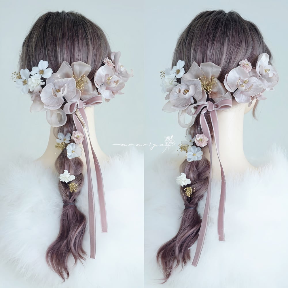 胡蝶蘭はベルベット素材の光沢が綺麗で抜け感のある大人可愛い雰囲気に感じられるお品です。