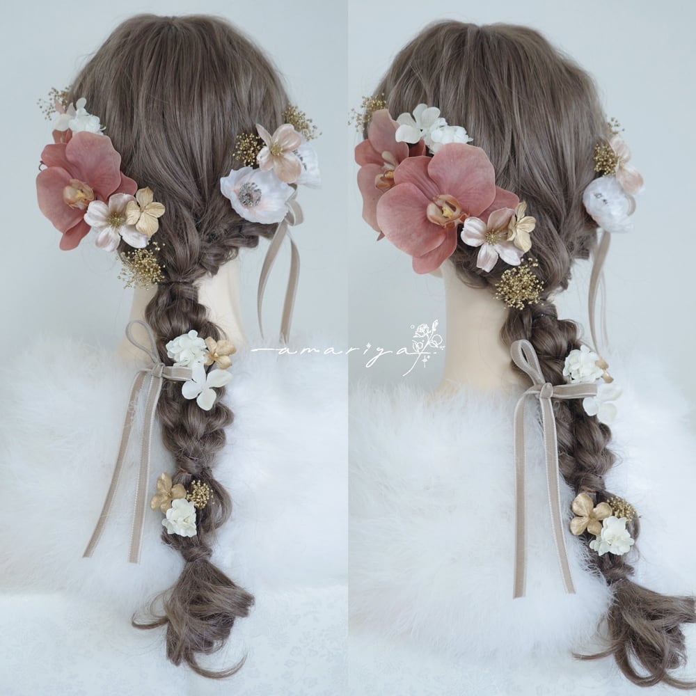 アンティークカラーですが、1点1点のお花の美しさで華やかに感じていただけますよう仕上げています。