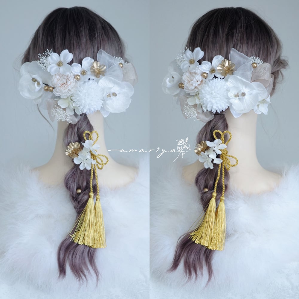 編み下ろしにもアップスタイルにも合わせていただけます華やかなセットです。