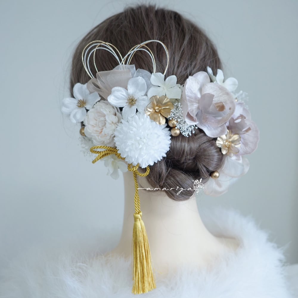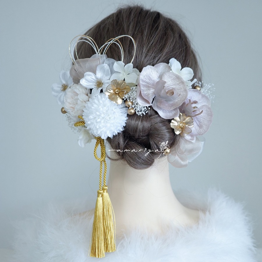 編み下ろしにもアップスタイルにも合わせていただけます華やかなセットです。