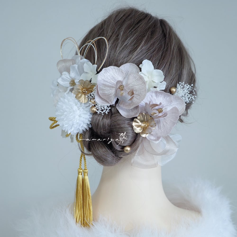 髪飾り ベルベット胡蝶蘭BE胡蝶蘭と桜ホワイトマム