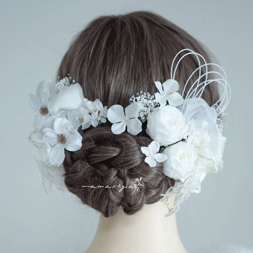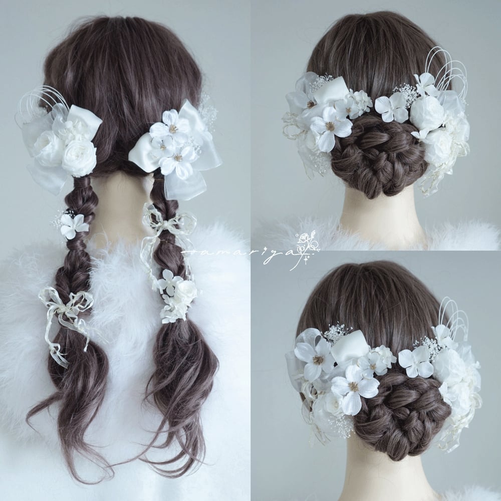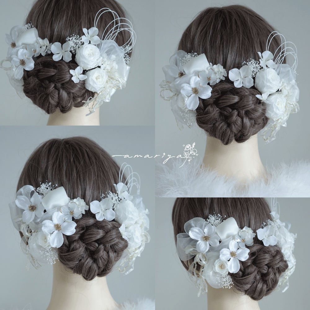 アップスタイルや編み下ろしスタイル、様々なヘアスタイルに合わせていただきやすいようにお作りいたしました。