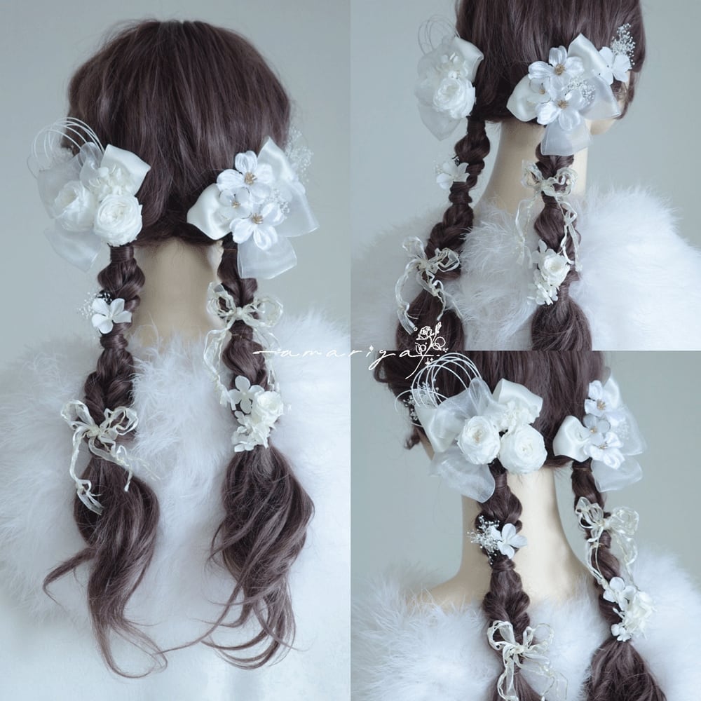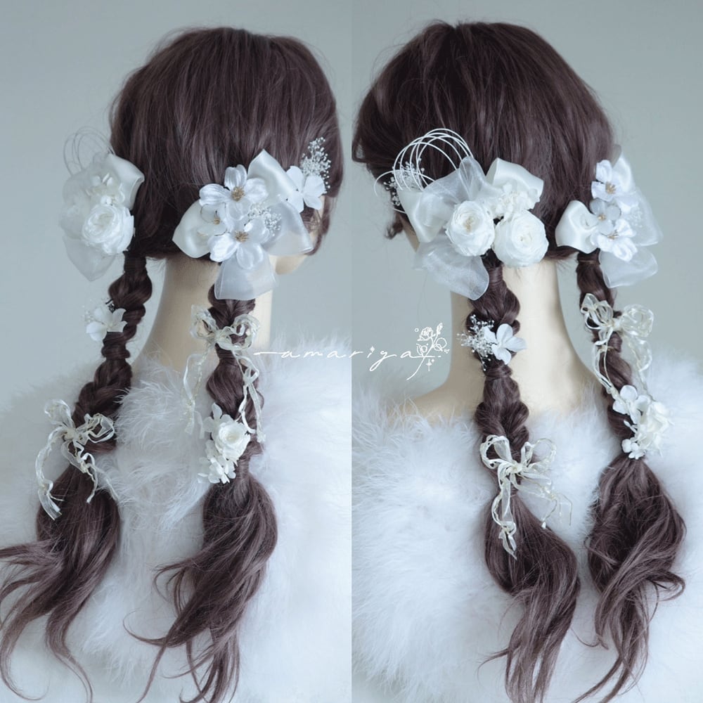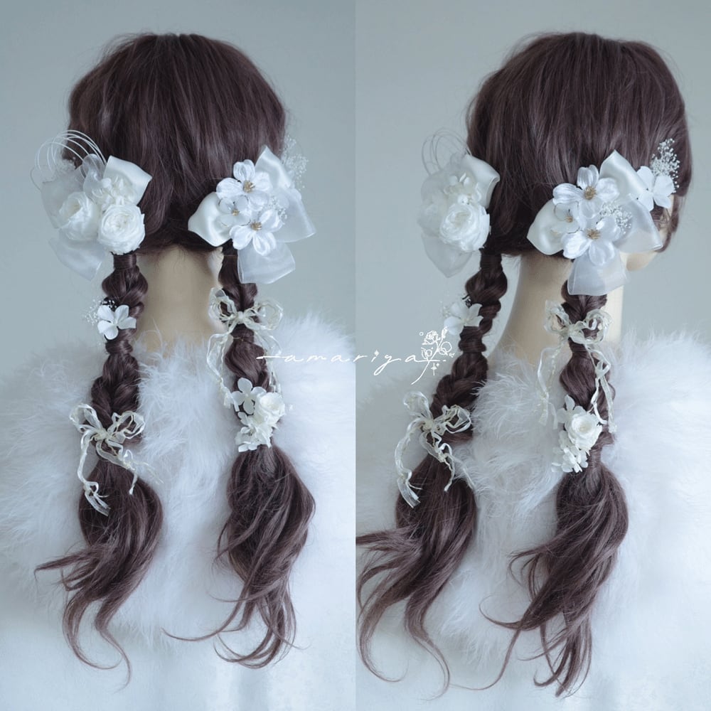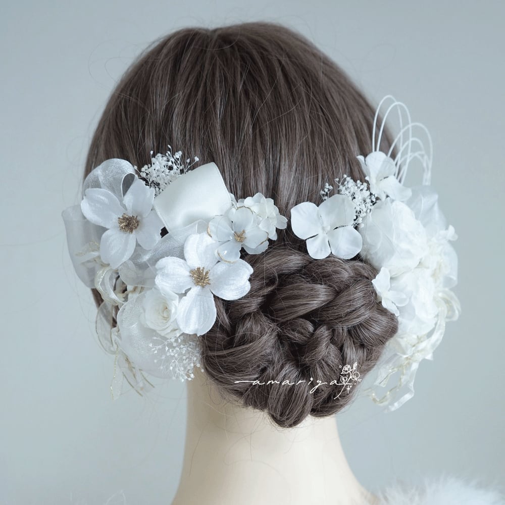 アップスタイルや編み下ろしスタイル、様々なヘアスタイルに合わせていただきやすいようにお作りいたしました。