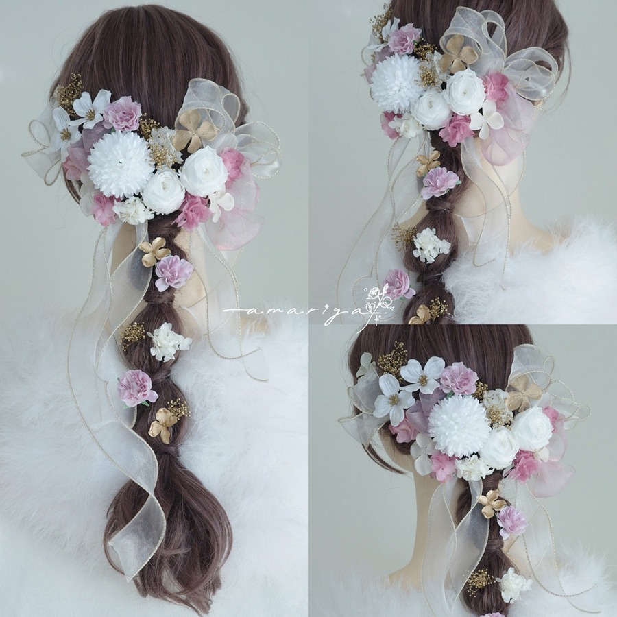 様々なヘアスタイルにご使用いただけますよう、リボンは細かいパーツにお作りしています。