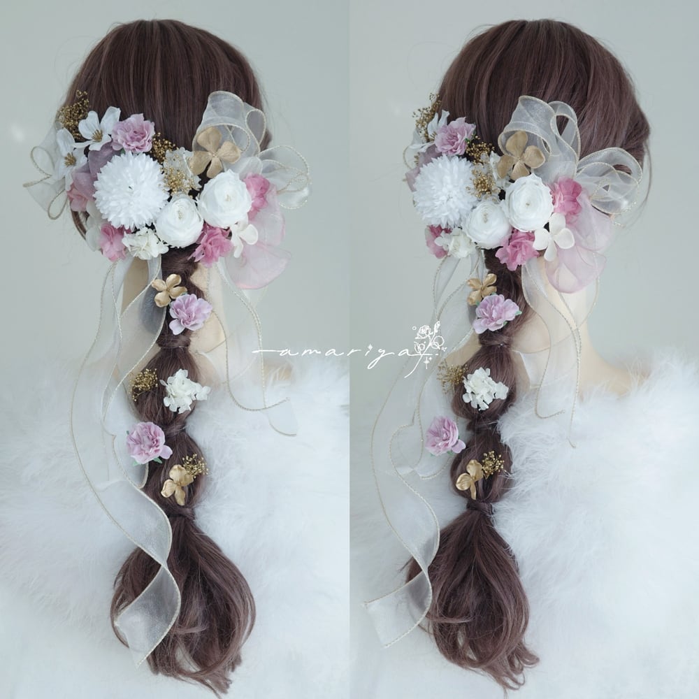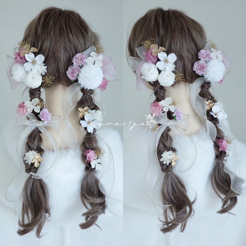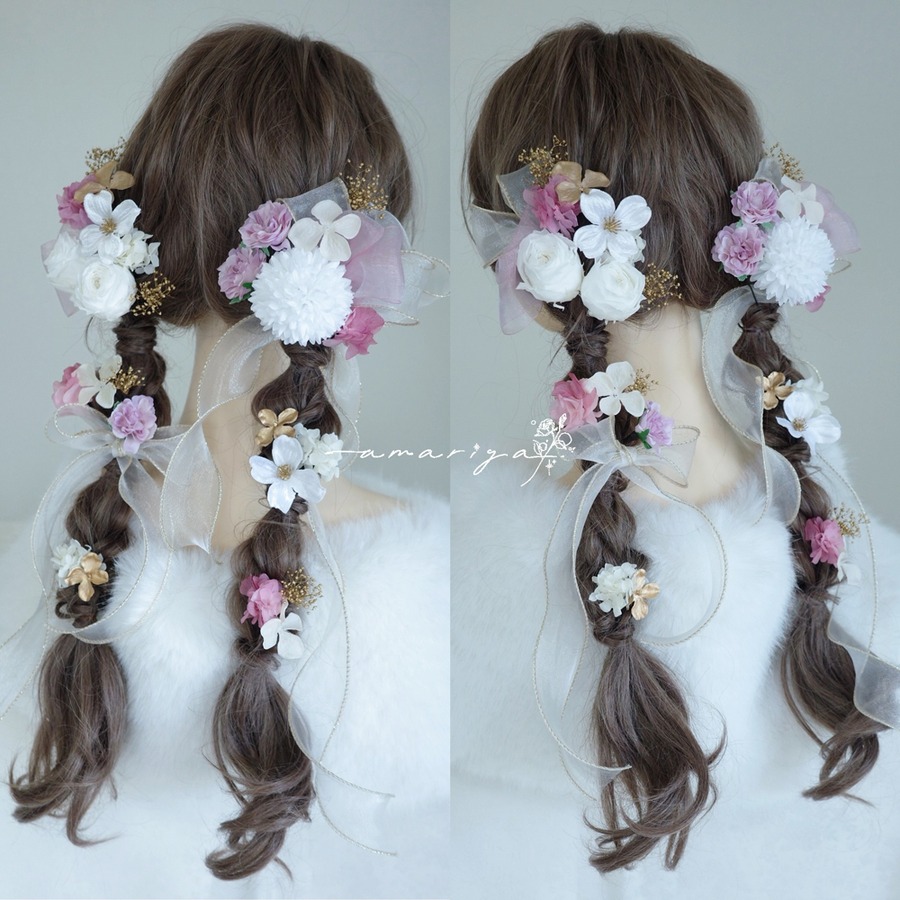 編み下ろしスタイルにもツインテールにも可愛らしくご使用いただけます豪華なセットです。
