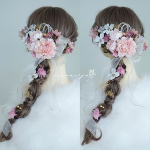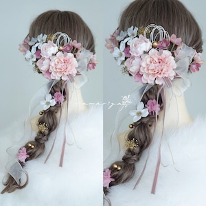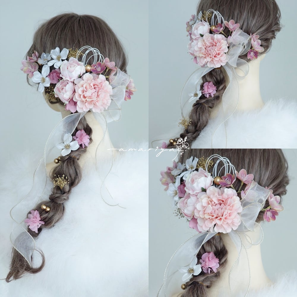 お色のトーンを合わせましたマーブルピンクの桜や、光沢の綺麗なホワイトのベルベット桜をアクセントに仕上げました。