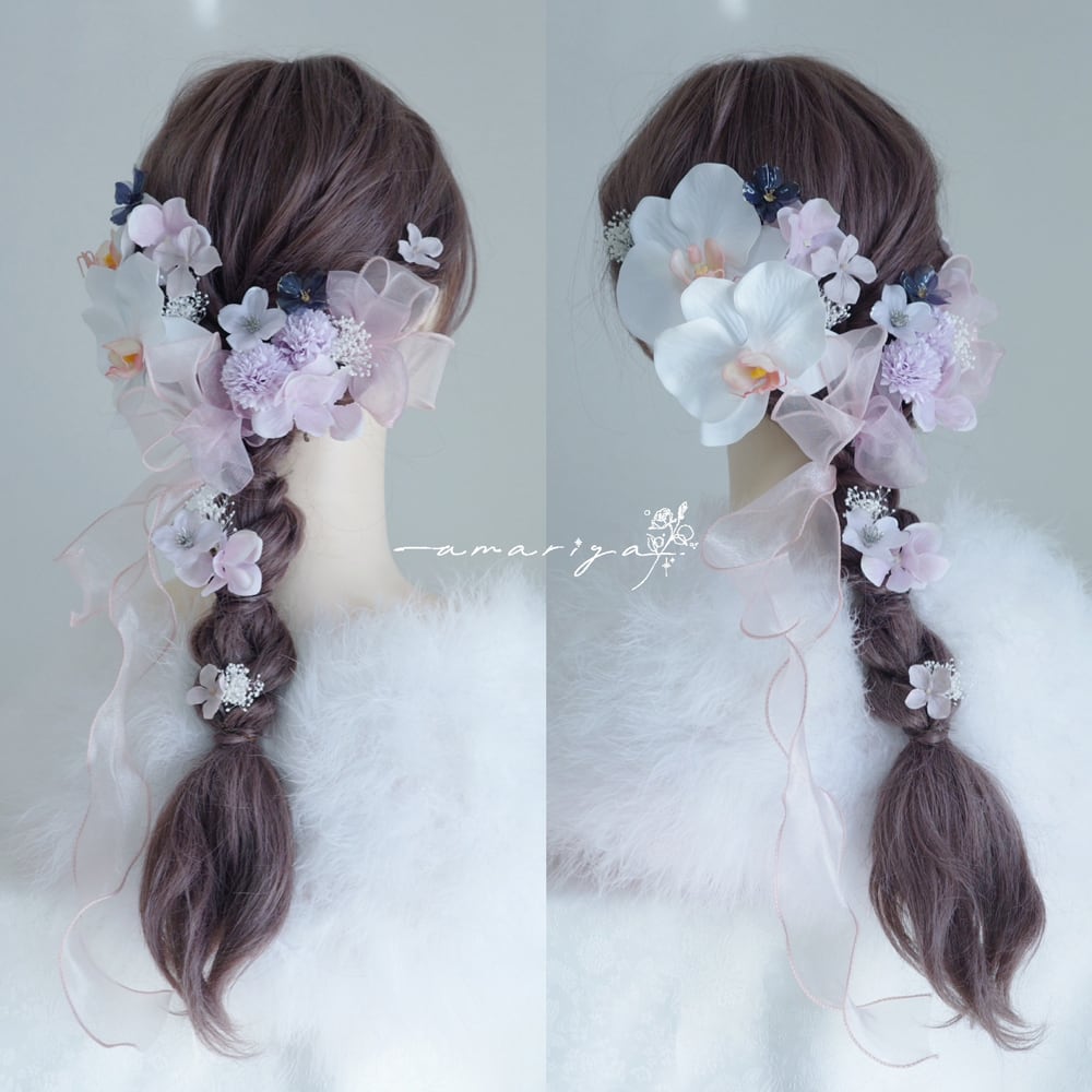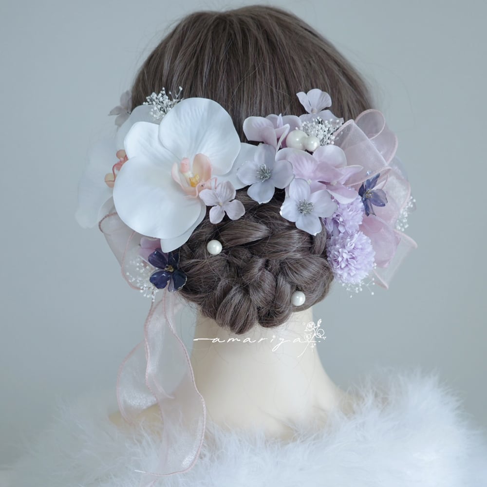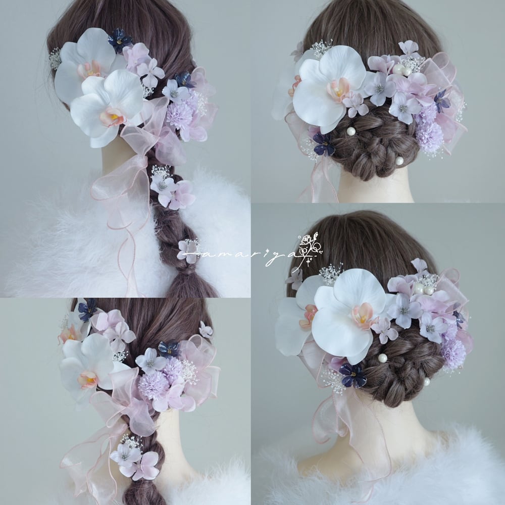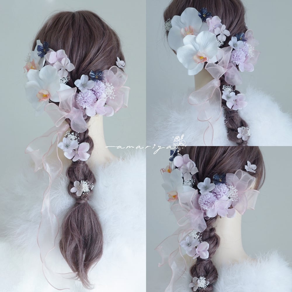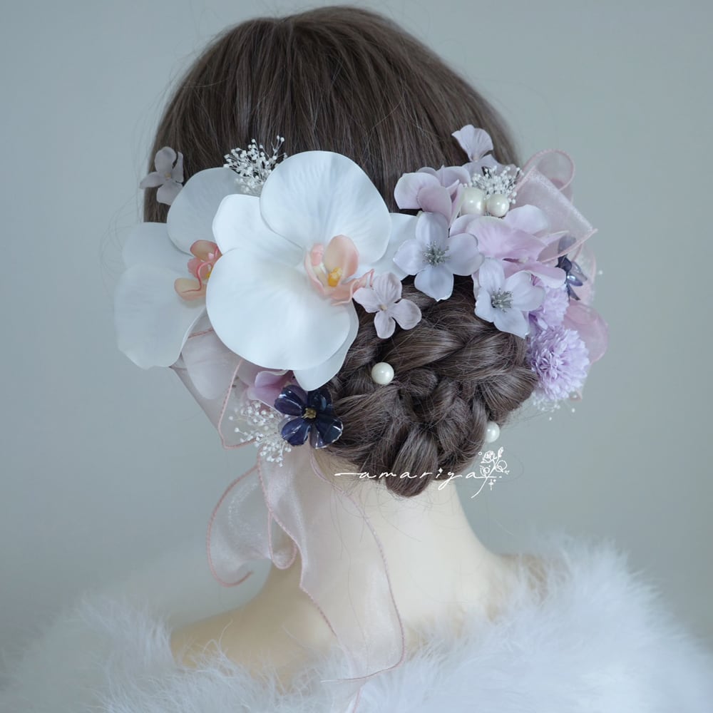 髪飾り 胡蝶蘭と2色のアメリカンフラワー