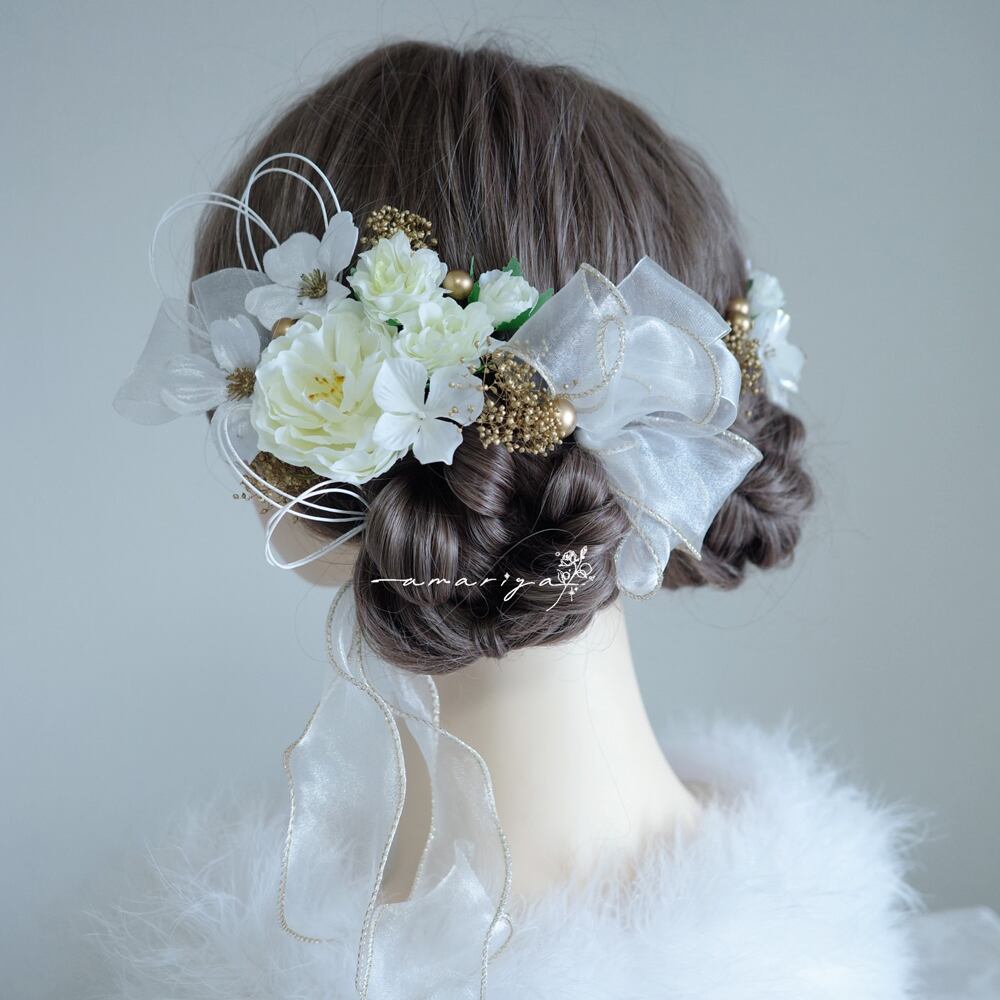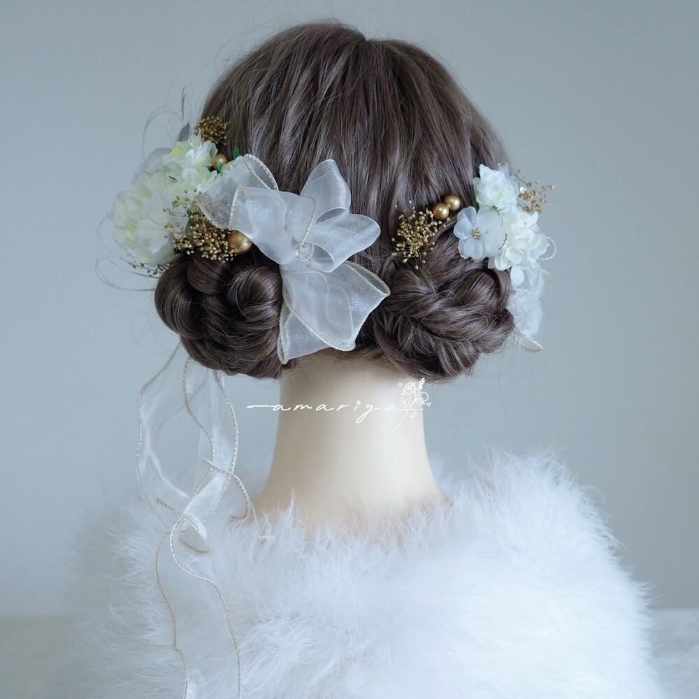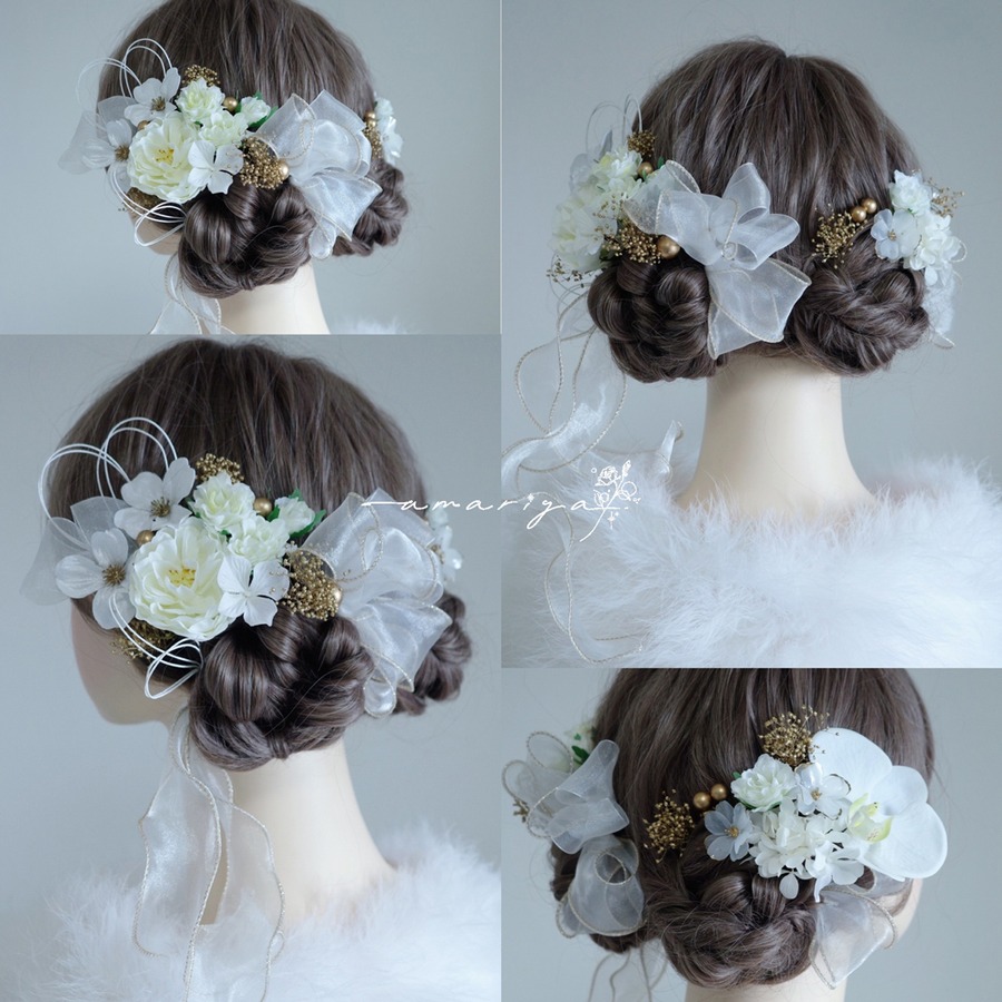 アップスタイルや編み下ろしスタイル、様々なヘアスタイルに可愛く合わせていただきやすいように組み合わせています。